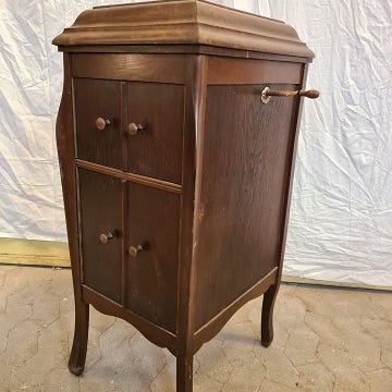 Engelsk grammafonplade skab med låger, Antikt. Massivt eg. Udslåede låger 63