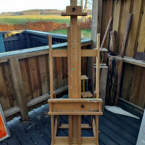 Talens H-fods staffeli i træ med justerbare dele til at holde lærred.