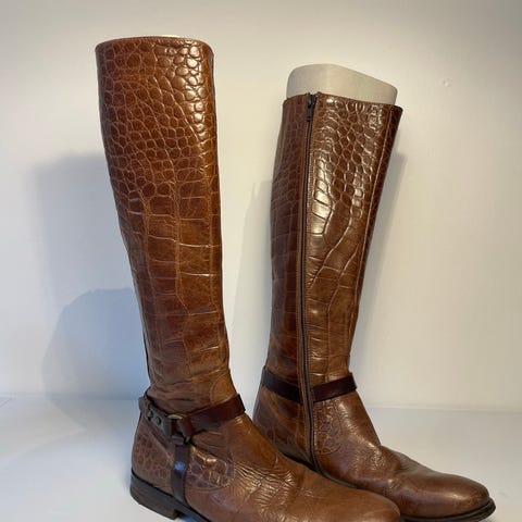 Søgeord: støvler, højskaftet, cowboy støvler, spænde, læder, brun, beige, flade, lynlås, ankel, krokodille, slange, spænde, rem, jul, nytår