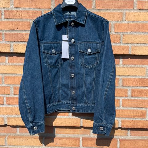 OM VAREN: Denim jakke med lynlås som kan åbne begge veje. Rigtig flot snit, lidt figur syet.