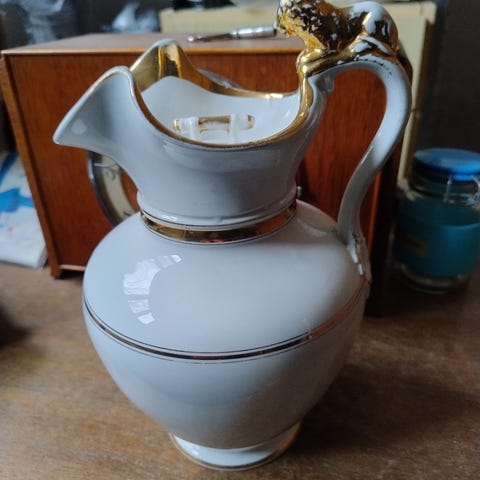 Flot kande uden store skader, kun et lille afslag på undersiden af låget. Fra først i det 1900. Sjælden i så god stand!!