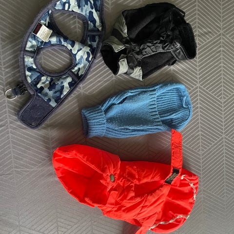 Her sælges diverse tøj til små små hunde /hvalpe.