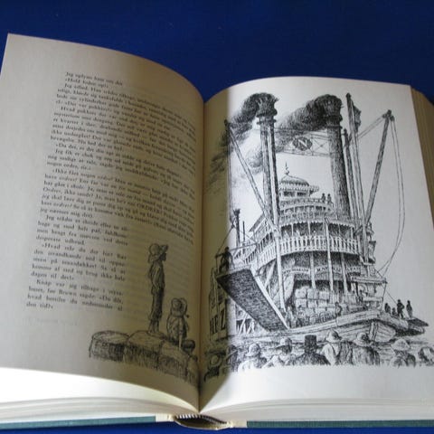 Mark Twain Livet på Mississippi Bog med illustrationer af Ib Spang Olsen. Bogen indeholder tekst og billeder, der beskriver livet ved Mississippi-floden. Udgivet af Centrum. Bogen er på dansk.