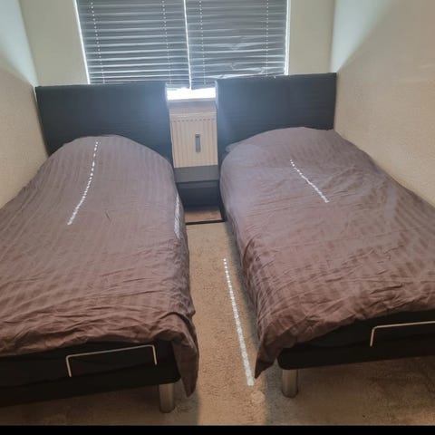 To enkeltsengerammer med elevation i både hoved- og fodende sælges - boksmadras medfølger ikke. Sælges for 1500 kr stykket eller 2500 kr samlet.