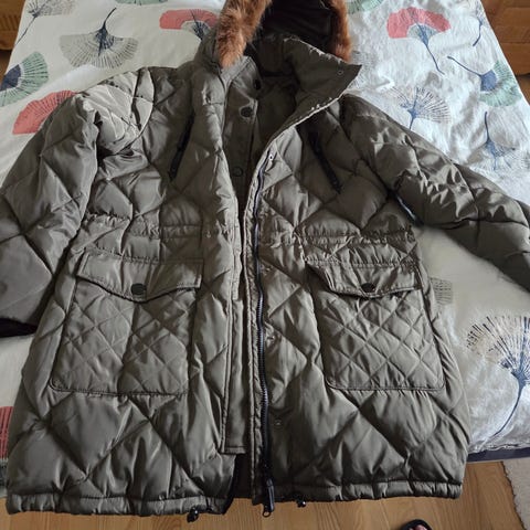 Vinterfrakke/cottoncoat i sandfarvet bomuld m. kraftigt for.