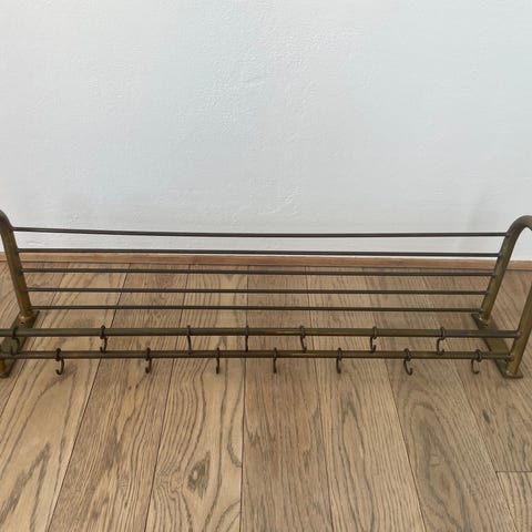 Messingbelagt hattehylde fra 1960'erne med 3 stænger foroven på hattehylden.