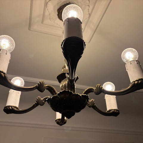 Der er plads til 5 pærer , 4 rundtom og 1 i midten. Der kan tislyttes to stikkontakt til , så mulighed for at have stor og lille belysning, eller begge dele på en gang