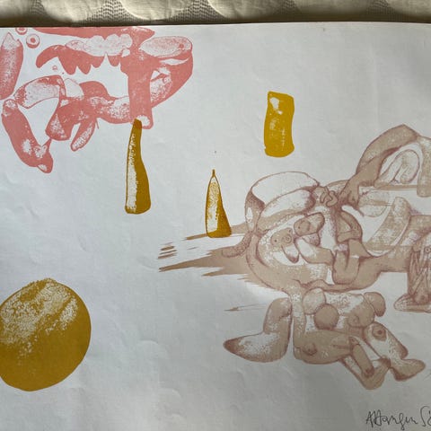 h: 49, b: 65, motiv: Komposioner, Nes Lerpa Litografier, Nes Lerpa. (1942), maler og grafiker -