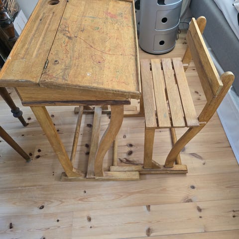 Særdeles skøn og sjælden set dansk vintage tavle skrive-/tegne pult med stol - sæde