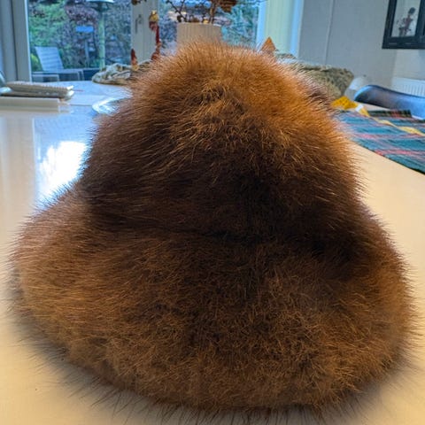 Hat, no name, str. medium, Supersmart mink alpehue - så god som ny - ideel til den kommende vinter (giv et vinter bud!)