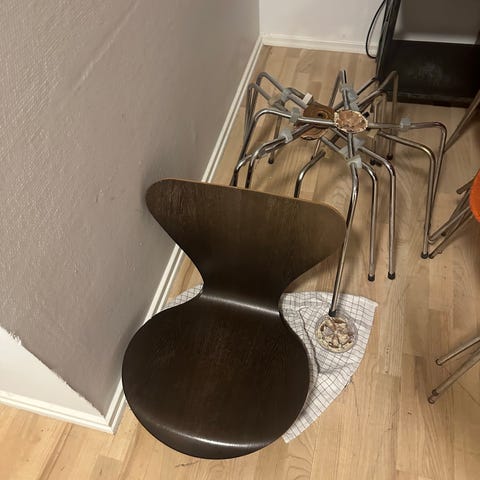 Eg stol og stof hynde der sidder fast på stolen