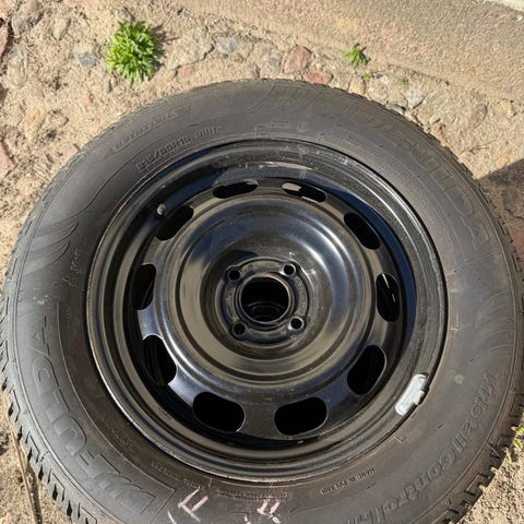 Mønsterdybde ca. 5+ mm, jævnt slid, ingen skader eller revner.