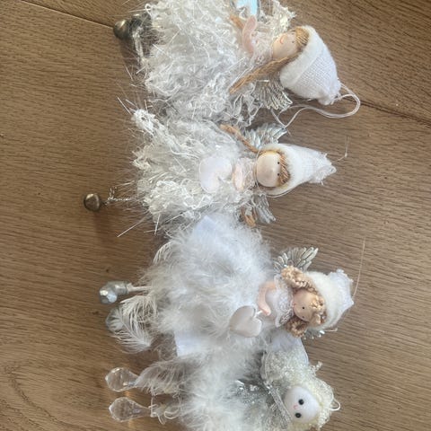 2 smukke engle i sart blå med sølvglitter og på metal fod.
