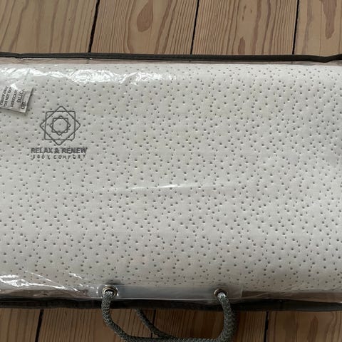 2 - ubrugt varmepude som er fyldt med cirka 1400 gram kirsebærsten, er 59 cm lang og 16 cm bred. Overtræksstof af økologisk ubleget og ufarvet bomuldsstof bomuld.