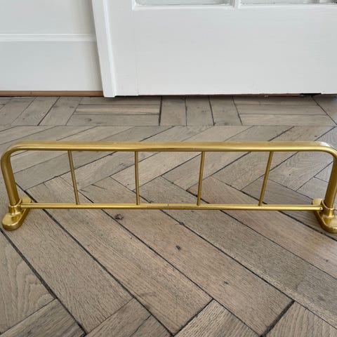 Ramme i messing med 3 tværgående stænger, hvor der kan hente kroge så du kan hænge køkkenredskaber, viskestykker, håndklæder, mv.
