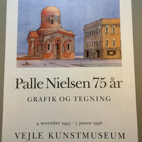 Signeret i bly. Udstillingsplakat fra Vejle Kunstmuseum. Motivet er fra serien “Mennesker og begivenheder” 1983.