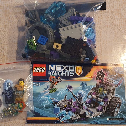 Komplet med 2 byggevejledninger, alle klodser, nyt ark klistermærker og minifigurer. Ingen æske. Pose 4 i sættet er aldrig blevet åbnet.