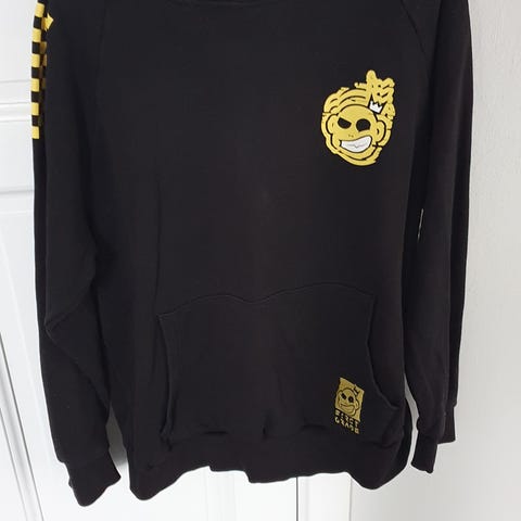 Blå Hoddie med gule snorre eller byd