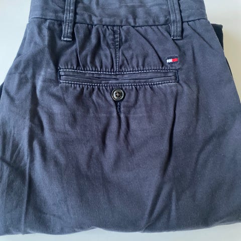 Tommy Hilfiger Chinos i beige farve til mænd i størrelse M. Bukserne er designet som chinos, hvilket giver et klassisk og alsidigt look. Materialet og pasformen er typisk for Tommy Hilfiger, velegnet til både hverdag og mere afslappede formelle sammenhænge.