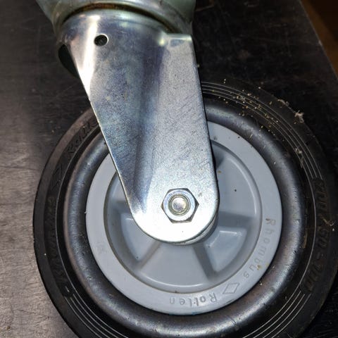 Skråtskårne hjul: inderkant 30mm, yderkant 15 mm, tværmål udvendigt 30 mm, akselafstand 60 mm, pladelængde 110 mm. To af rullerne skal smøres op. Pris pr. stk.