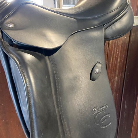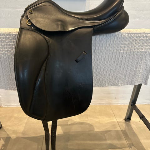 Lækker dressur sadel, passet godt på gennem 2 år. Altid hængt i opvarmet sadelrum. Vedligeholdt med stopning i alt 3 gange.