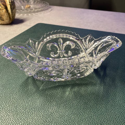 KRYSTALSKÅL, Bådformet krystalskål med pressemønster, Vintage krystal, Asiette