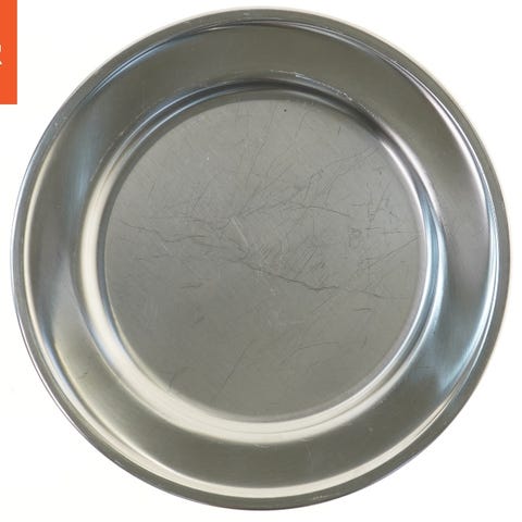 Rustfrit stål fad og øse ~ begge med træ-håndtag