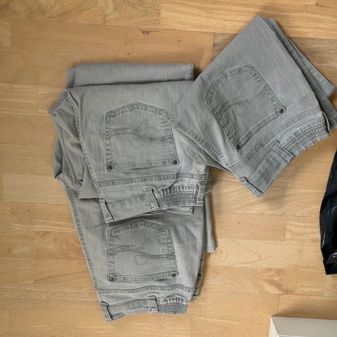 sorte jeans til kvinder i størrelse 42 med taljemål W44. Jeansene har en klassisk pasform og er fremstillet i denimmateriale. Designet inkluderer lommer og syninger typiske for jeans. Samt smart print på stoffet