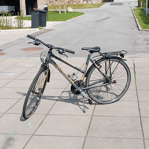 Med håndbremse for og bag, lås og støtteben. 8 invendige gear. Size 510. ALU 7005.