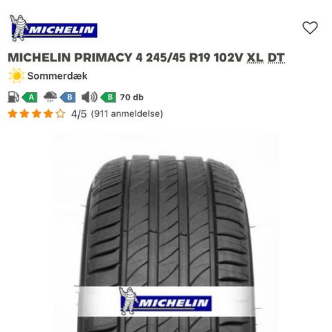 4 nye Michelin sommerdæk til halv pris. Kun kørt få hundrede km inden skift til helårsdæk. Ekstra energibesparende og derfor optimale til elbil eller biler med lavt brændstofforbrug. Skumindlæg for yderligere reducering af støj.