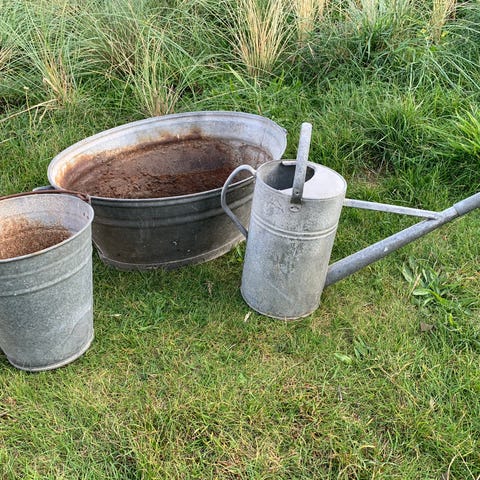 Andet, Zink vandkande dunk bi røg ting ( tror jeg), Gammel vandkande i zink til drivhus eller orangeri. Sød til haven. En stemning af sommerhus eller svensk skærgård en sjov kontrast til design..