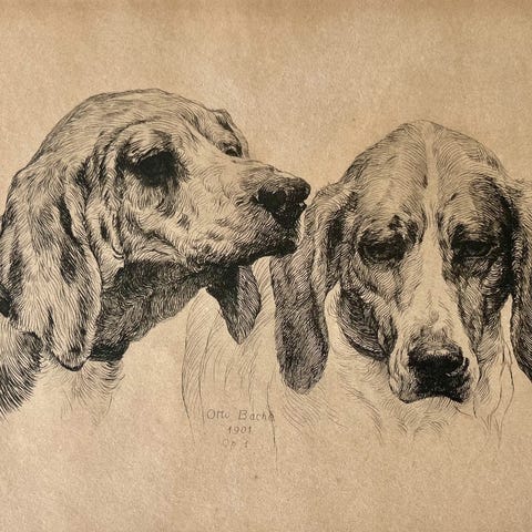 Billede med hunde, 109 år gl., af: Otto Bache. Opus 1. 1904