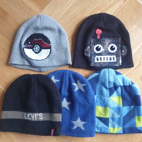 Flotte huer (en fra Mikk-Line og 4 fra Molo) i forskellige størrelser. Som nye. Prisen er for alle 4 huer.