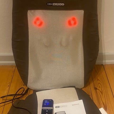 Shiatsu Relaxation Cushion er et elektrisk massageapparat designet til afslapning med shiatsu-massagefunktion. Den har et ergonomisk design, der passer til nakke og skuldre, med varmefunktion og flere massagehoveder. Størrelsen er cirka 40x40 cm. Produktet inkluderer en hovedstrømsoplader og en biloplader og leveres i original emballage.