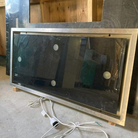 Stor emhætte “kasse” til et storkøkken/restaurant i rustfrit stål som måler 120 x 70 x 55 cm