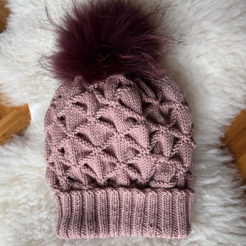 Beige strikhue i 100% merino uld