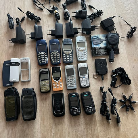 Fem gamle mobiler