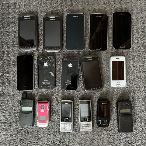 Sælger de her gamle mobiler, aner ikke hvad standen er på dem 4 samsungs og 1 LG