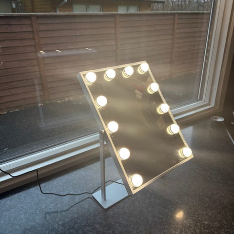 Opgrader dit badeværelse, gang eller lignende med et flot rektangelt spejl med lys i en perfekt størrelse. Lyskilden er LED så derfor er det ikke kun rigtigt godt til at lække make-up, det er også billigt i strøm. Stadig i original emballage.