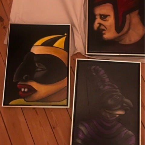 6 værker sælges kun samlet. Mål i billeldrækkefølge og incl. rammer: