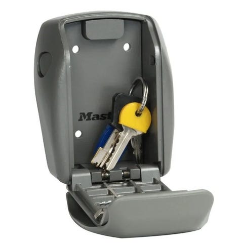 Ruko Nøgleskab i metal med beige farve. Indeholder nøgleringe til opbevaring og en lås med nøgle for sikker opbevaring af nøgler.