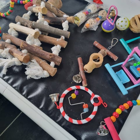 En del fugle legetøj mm. til mellemstore og store fugle.