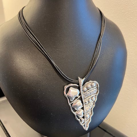 Hjerte hvori der er formet en blomst. Smuk håndværk!! 70 cm lang kæde. Lavet af smykkekunst håndværker R F NISKANEN. Et smykke fra slut 70'erne