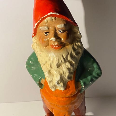 En charmerende havenisse med en lygte i hånden. Nissen har en rød hue, grøn jakke og brune bukser. Lygten er sort med en guldfarvet inderside. Perfekt til at skabe en hyggelig atmosfære i haven eller på altanen.