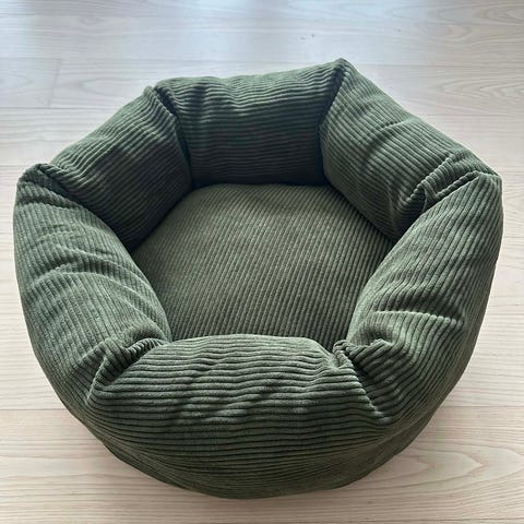 Flot ekslusiv wooldot hundeseng i lyse tiltalende farver. Kun brugt en måned. Passer til små og mellemstore hunde som pudler, retriver, doodler etc. Har desværre ikke brug for den mere.
