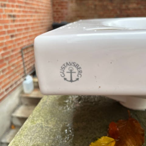 Brugt Gustavsberg håndvask med armatur, mål: H24,5 B58 D43,5, tjek vores hjemmeside for lager status Varenummer: 1338