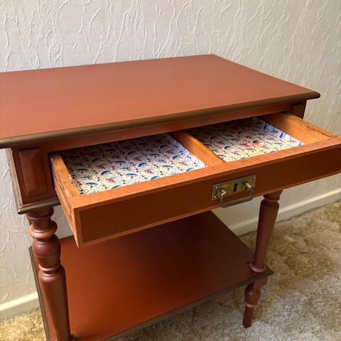 Antik lille hjørnebord på fod med lille skuffe.