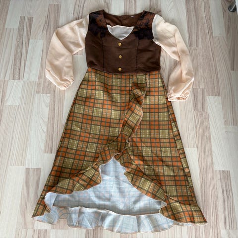 Hjemmestyet vølve-kostume. Består af underkjortel, kjole og kappe.