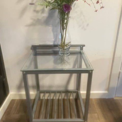 Lille sengebord med glasplade 70,-