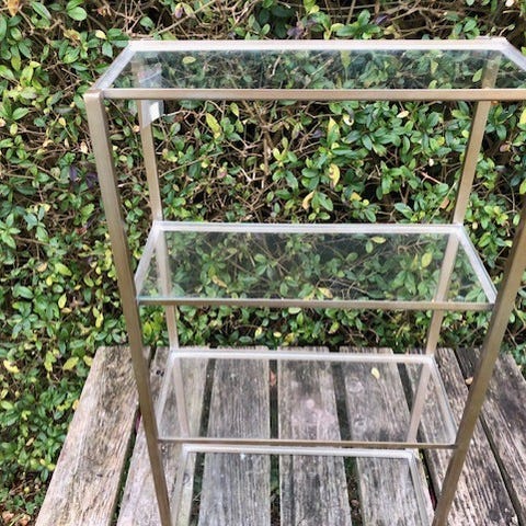 Hængereol med 3 glasplader og hængeknager nede under 125,-